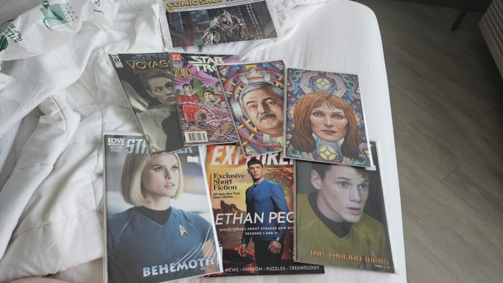 We stopped by Wades Comics on the way into the show and while I enjoyed chatting with the guy behind the counter and I got a couple really cool Trek books from them, the state of that store was intensely distressing for me as someone that values organization and clear pricing. Long boxes stacked on top of each other with naked books, no prices on any of them, then stacks of loose comics on top of those. I didn’t spend much time going through those stacks and only asked about a few books I saw on their ebay shop, which they were able to find easily and sell to me, the discriminating consumer. I adore the books that I bought there, which included my very first 1:100 virgin variants from a specific series.
