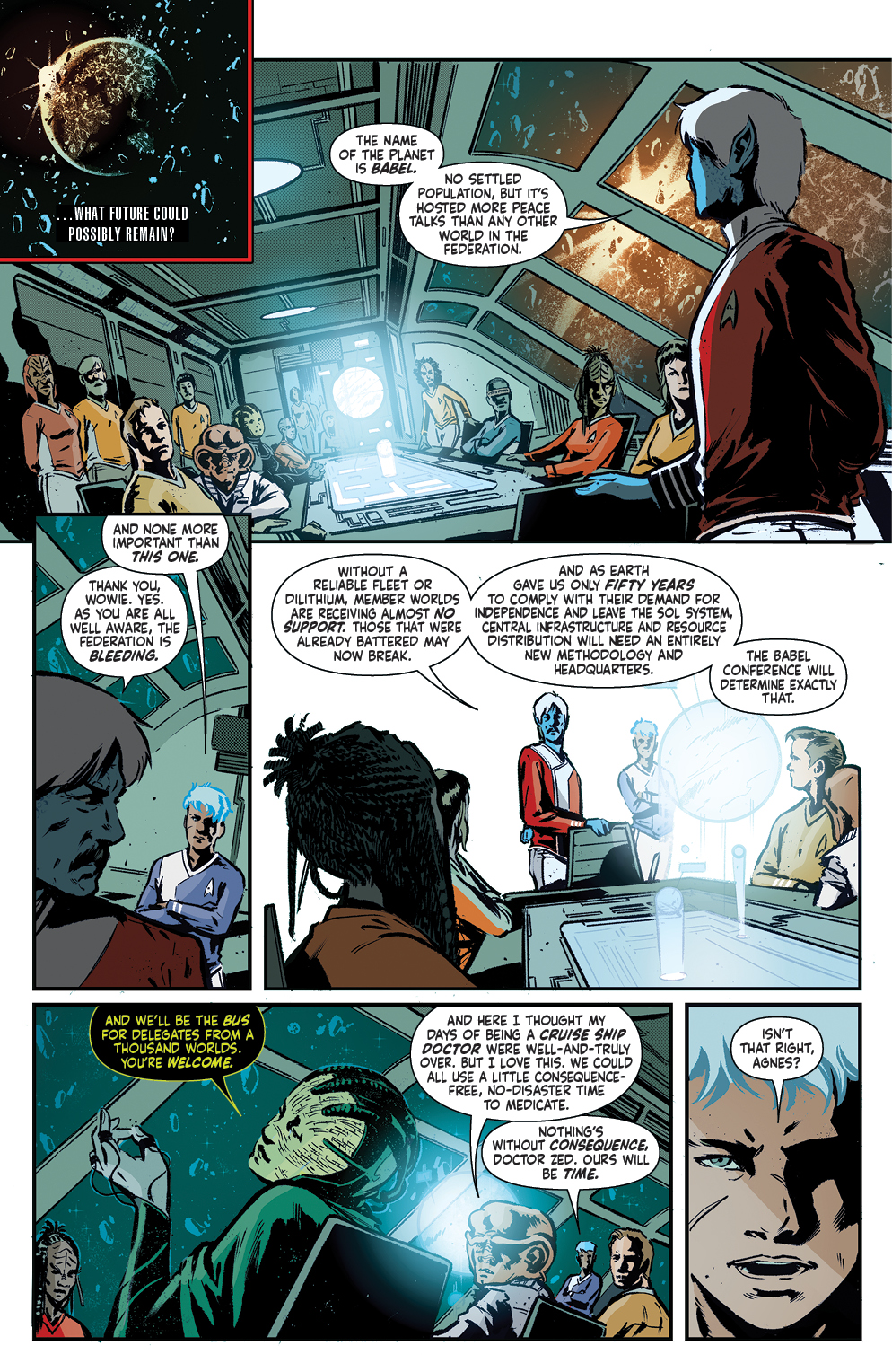The U.S.S. Omega’s mission is clear: Gather the final delegates for the Babel Conference, the Federation’s last, fragile chance at unity. A future of peace still seems possible…on paper. But every time Wowie returns to Earth, the home they once loved slips further into despair.